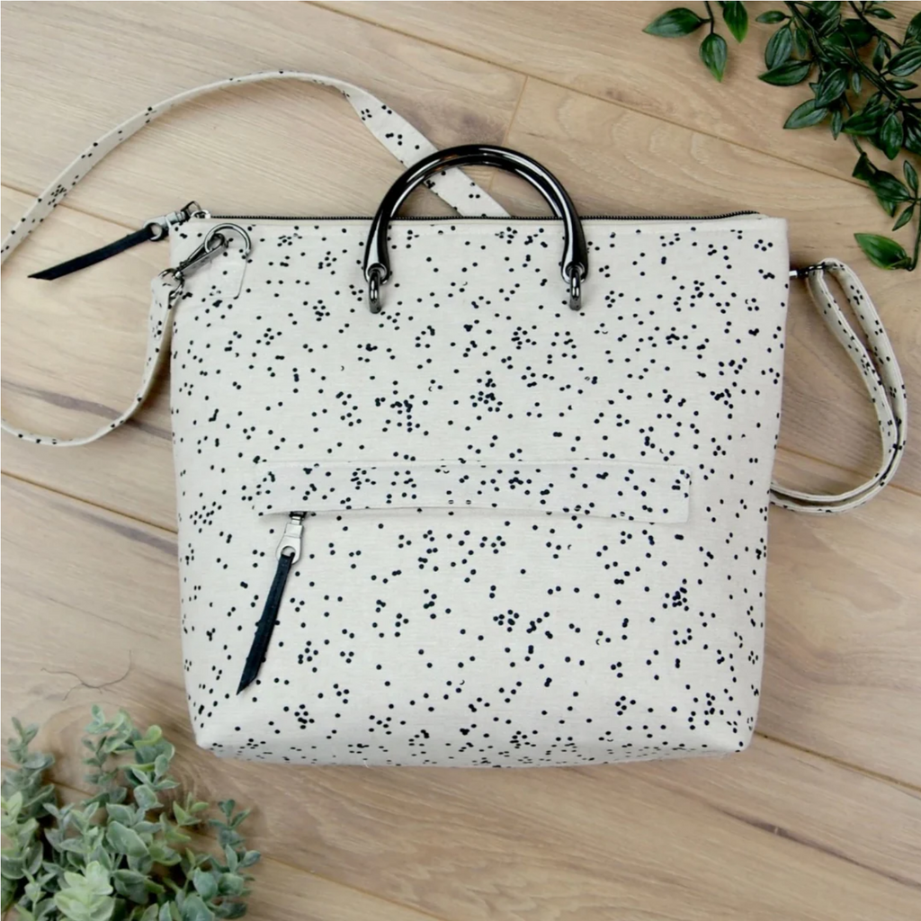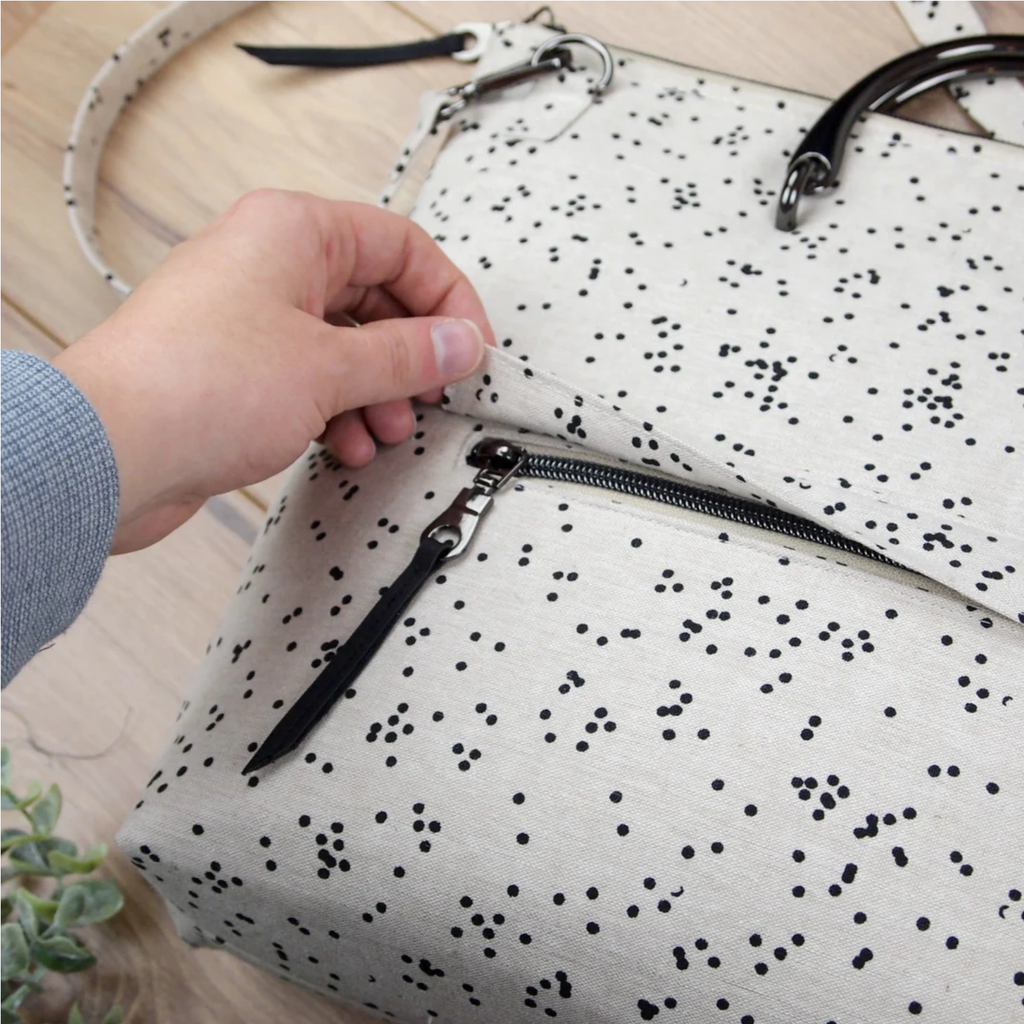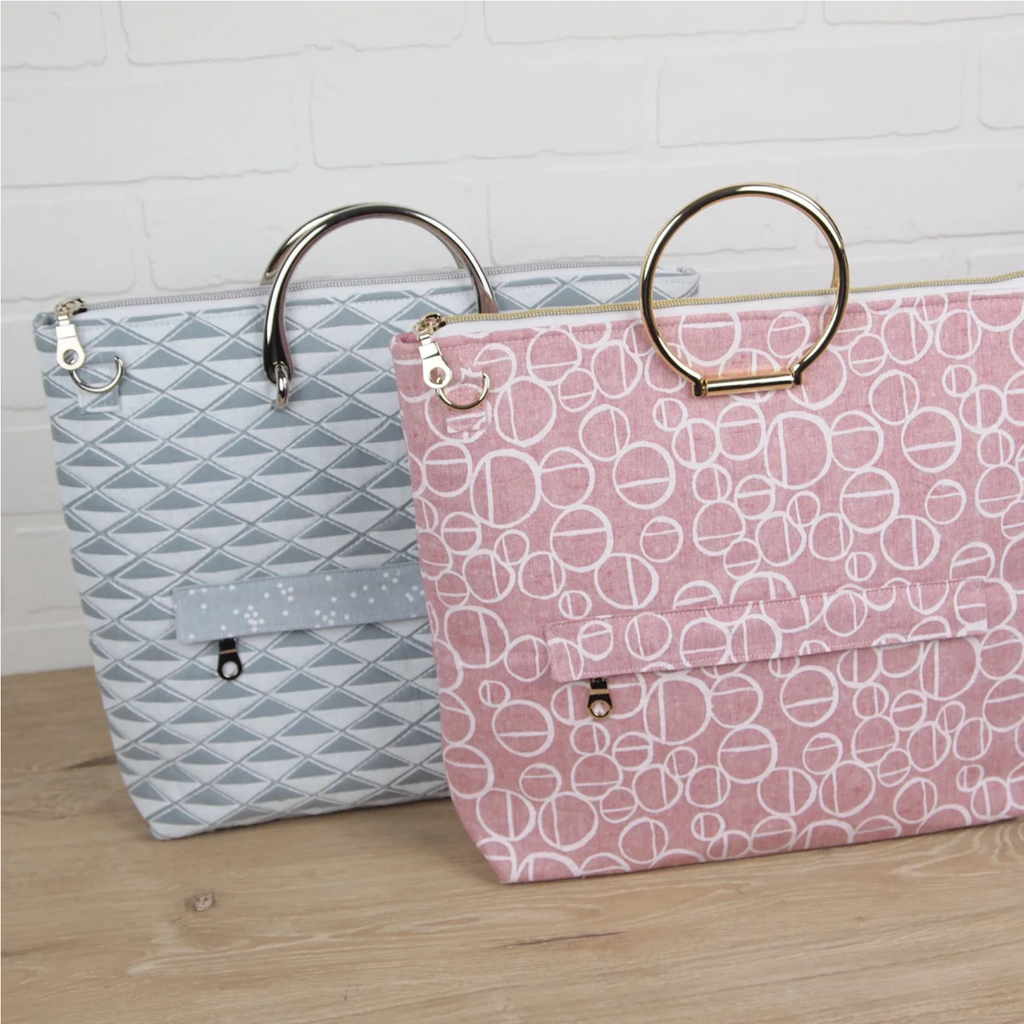 Audrey is a modern, zipper top tote bag. This pattern is great for showing off your favorite prints, quilted fabric, or even embroidery. The name was inspired by the film and fashion icon, Audrey Hepburn, and the simple, stylish handbags she carried.