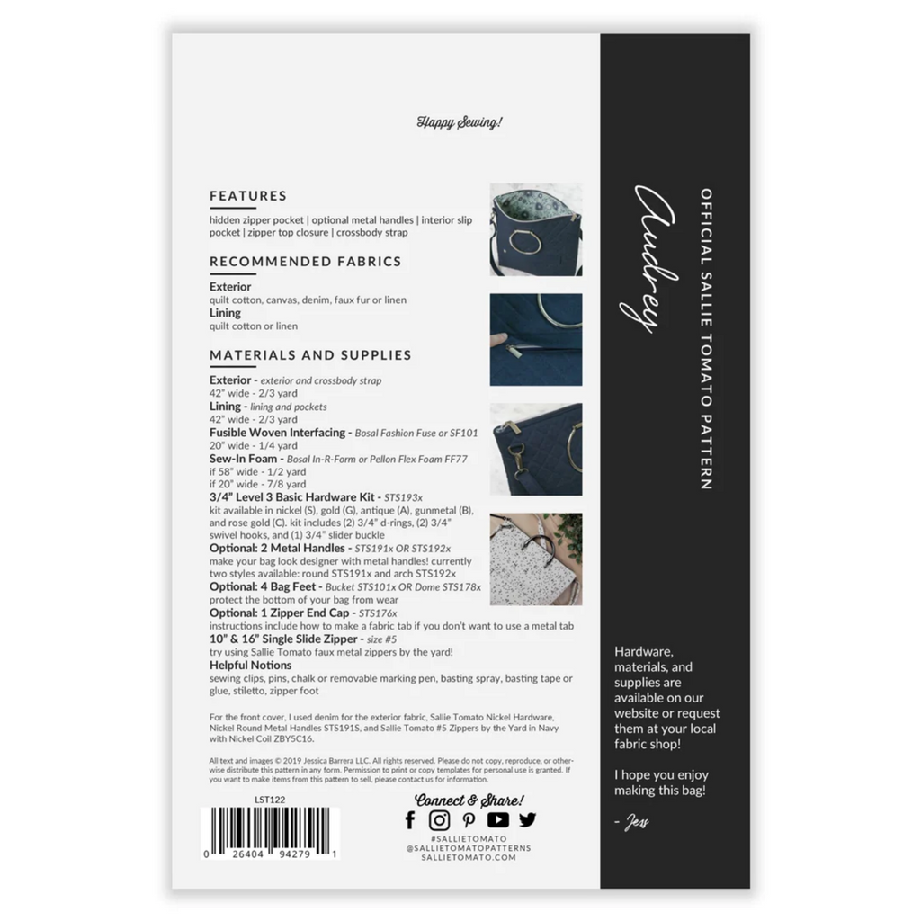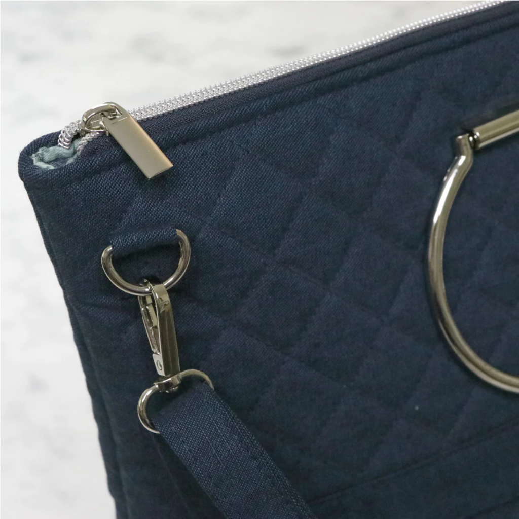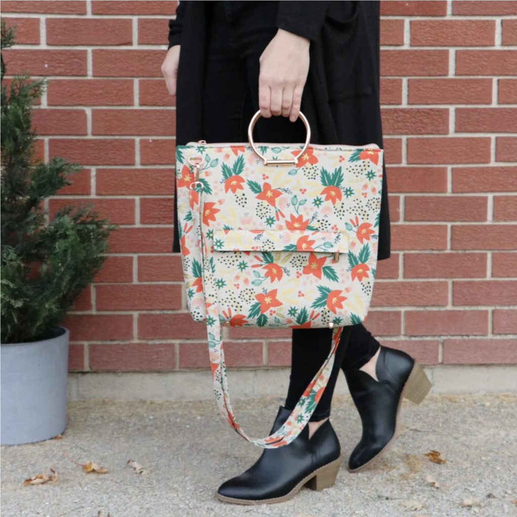Audrey is a modern, zipper top tote bag. This pattern is great for showing off your favorite prints, quilted fabric, or even embroidery. The name was inspired by the film and fashion icon, Audrey Hepburn, and the simple, stylish handbags she carried.