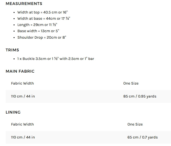 Suggested Fabrics : Leather, canvas, denim