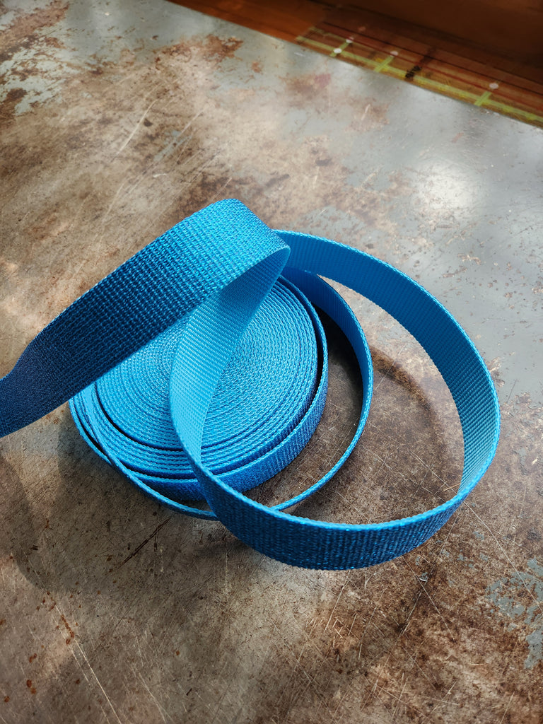 1.25in width. Acrylic cotton combination webbing is strong yet pliable. Easily sewn with a Universal needle on a home sewing machine.
